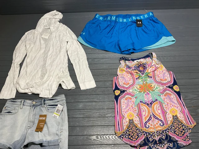 Das sind Bekleidungspaletten aus Store Pulls – Artikel, die ursprünglich im Einzelhandel waren, jedoch nicht verkauft wurden und nun ins Großhandelsgeschäft gehen.