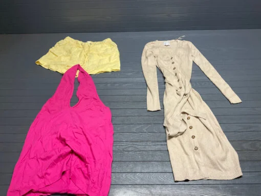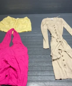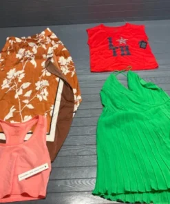 Pallet Clothes – 168 Stück Lot: Dieses Paket ist ideal für Wiederverkäufer, Boutiquen und Online-Händler, die ihr Sortiment mit gefragter Markenbekleidung erweitern möchten. Alle Artikel stammen aus Store Pulls (Regalrücknahmen) und sind größtenteils in neuwertigem Zustand. Viele Teile sind mit Original-Etiketten versehen (NWT), einige können leichte Handling-Spuren aufweisen.